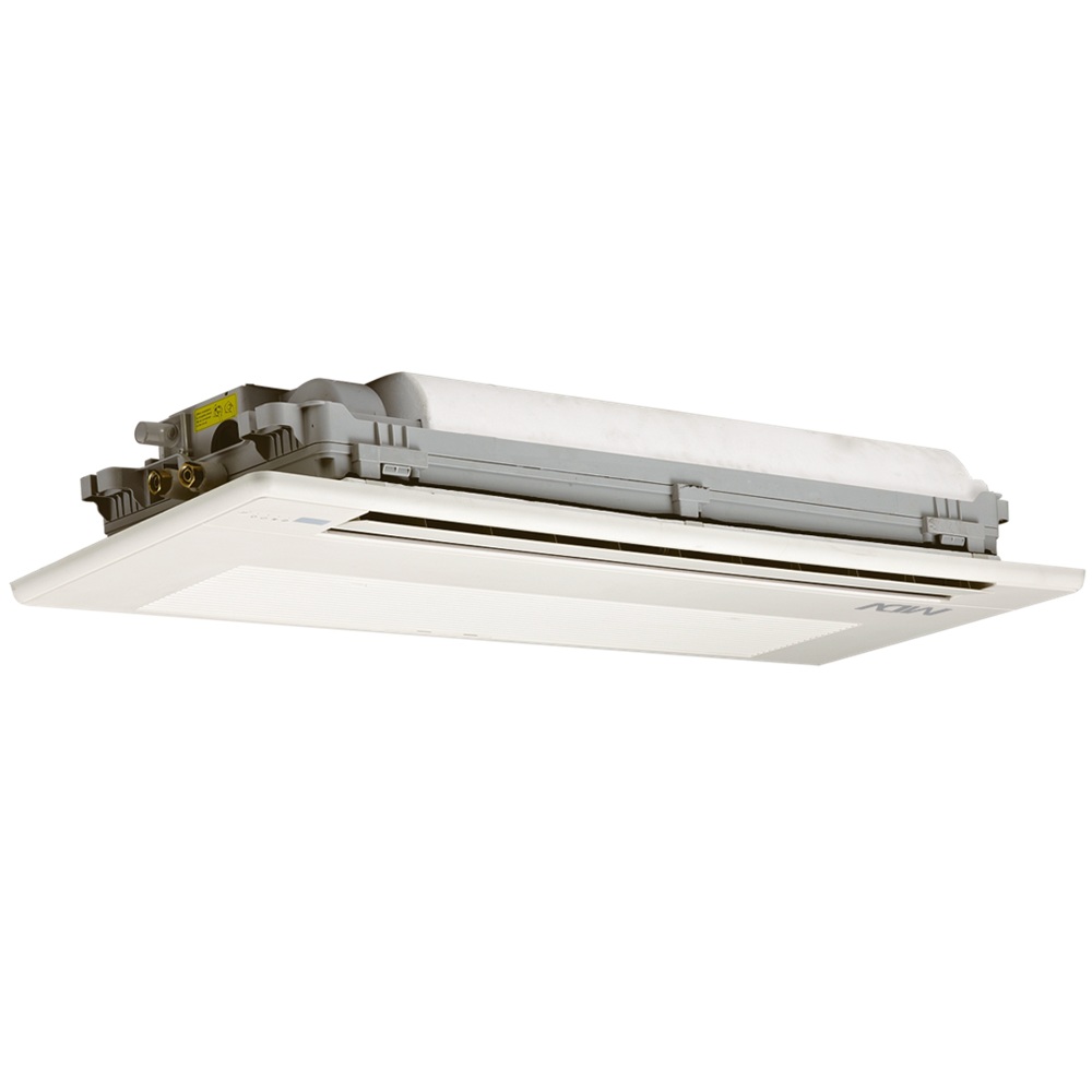 Двухтрубные однопоточные кассетные фанкойлы DC серии MDKC представлены моделями производительностью от 2,64 до 5,09 кВт. Поставляются в комплекте с противопылевым воздушным фильтром класса G2 и беспроводным пультом управления. Корпус фанкойла выполнен из ABS- и PS-пластика. Применение высококачественных материалов и современных технологий обеспечивает низкий уровень шума агрегата и полное соответствие требованиям безопасности.
